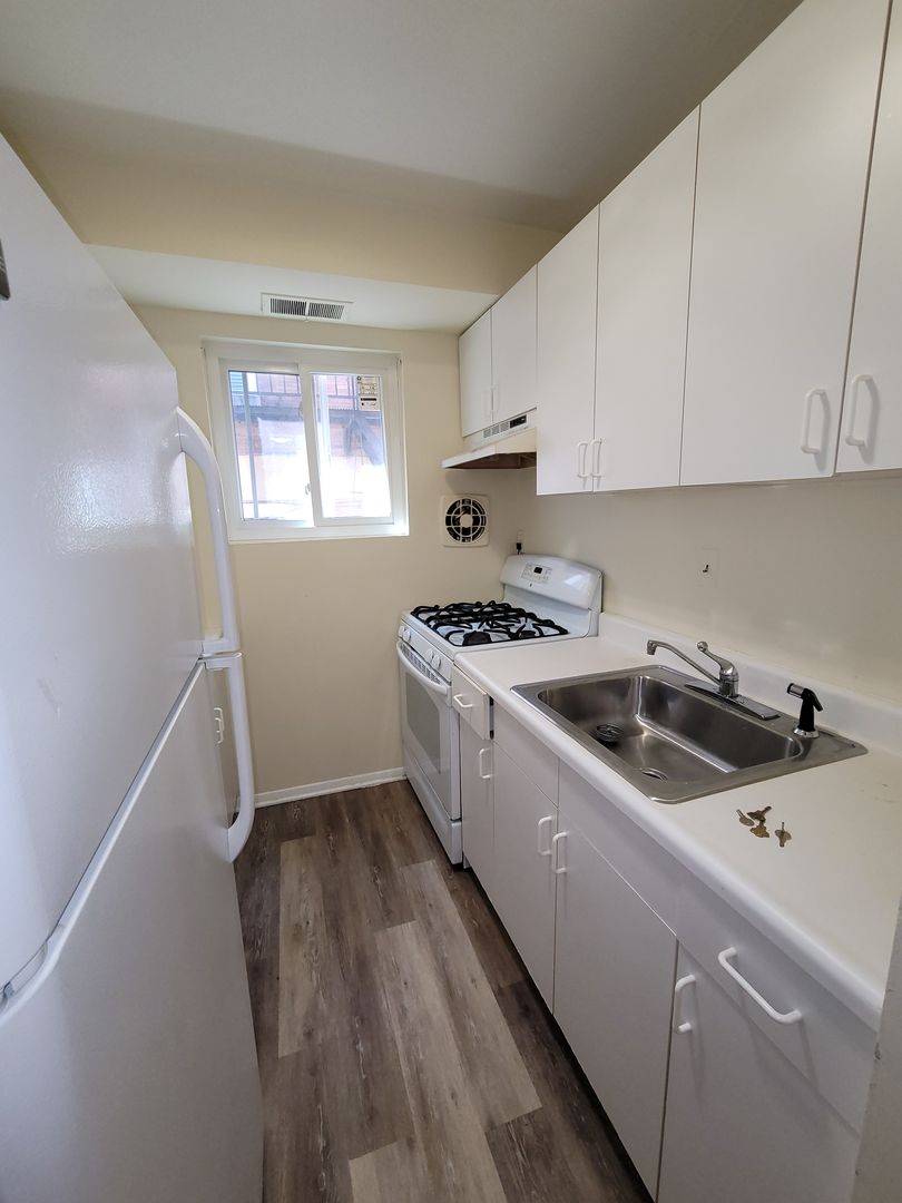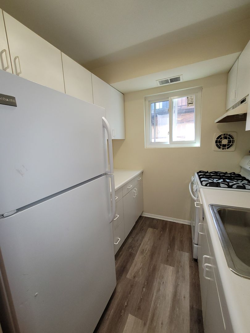 The apartment includes a full bathroom, a galley-style kitchen, and a large living room/dining room combo—perfect for entertaining or relaxing. Enjoy year-round comfort with central air conditioning.